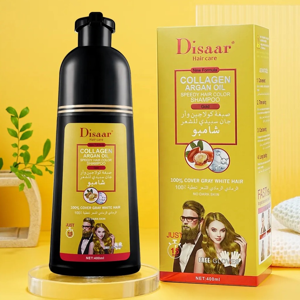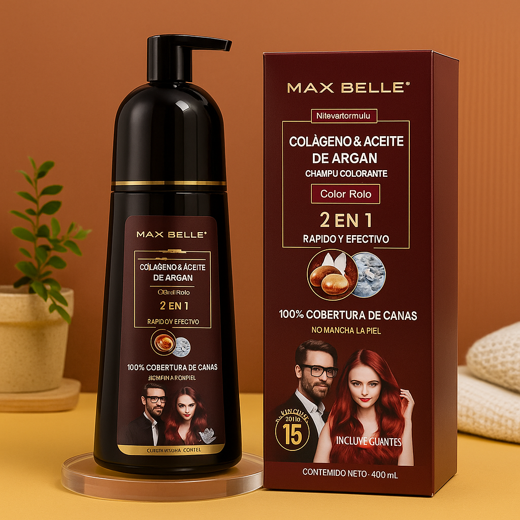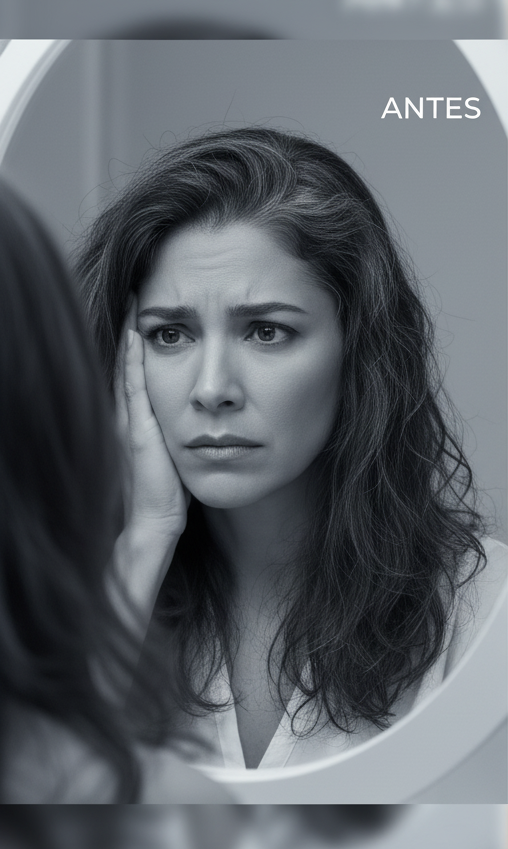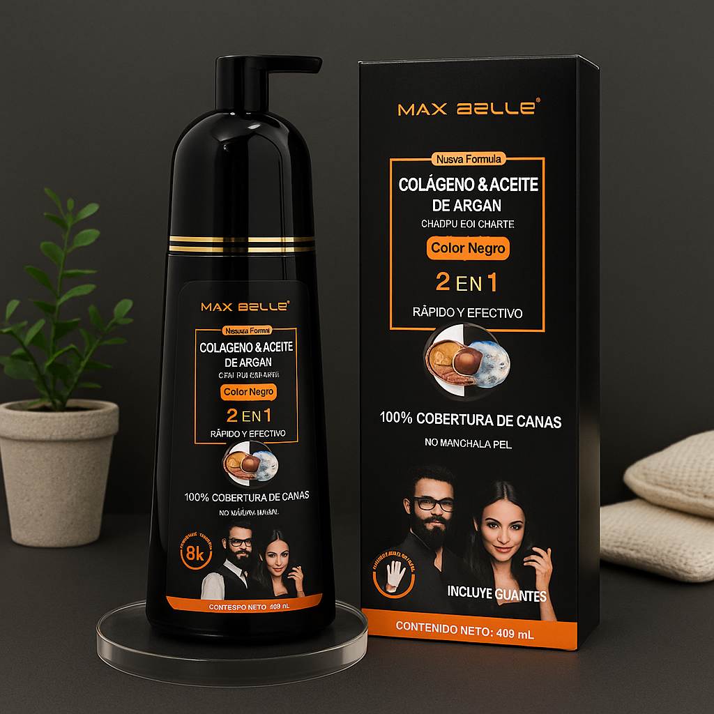 Todo lo contrario. A diferencia de los tintes convencionales que contienen amoníaco y químicos agresivos que resecan y quiebran el cabello, nuestro champú colorante está enriquecido con Colágeno Hidrolizado y Aceite de Argán Puro. Mientras colorea, estos ingredientes están REPARANDO y NUTRIENDO tu cabello. El colágeno fortalece la fibra capilar desde adentro, reduce la caída y devuelve elasticidad. El argán hidrata profundamente, aporta brillo intenso y suavidad sedosa. El resultado: cabello no solo sin canas, sino visiblemente más saludable, fuerte y brillante que antes.